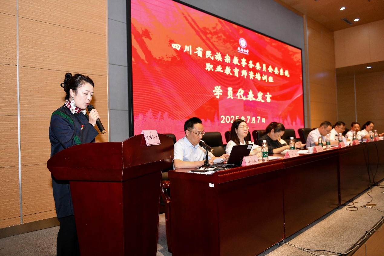 随后,帅祥军巡视员作动员讲话。他强调,本次培训旨在为委属院校的老师们提供一个学习交流、充电赋能、提升自我的平台,共同探讨新时代民族职业教育发展的新理念、新路径,依托成都大学优质资源,赋能委属职业院校师资队伍建设。他对参训学员提出三点要求:一是增强政治意识,牢牢把握铸牢中华民族共同体意识这条主线;二是坚持靶向赋能,聚焦主责主业,提升传道授业解惑育人能力;三是严守学习纪律,确保培训安全有序有效开展。最后,他对成都大学支持少数民族地区职业教育技能提升及组织此次培训的工作人员表示感谢,并预祝培训圆满成功。
